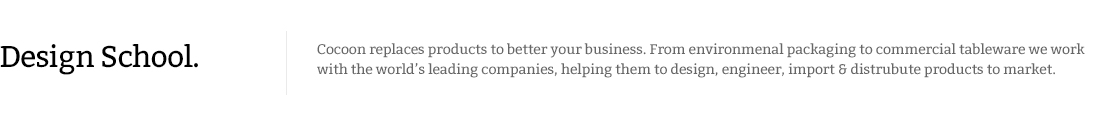 An effective two-way platform to give a voice to young creative people, connecting them with manufacturing in a wide variety of materials and harnessing Cocoon’s production experience. Our new talent development brand, in conjunction with industry placement for young designers, this year will develop into a fully functioning studio with a focus on bringing the next generation of ideas + concepts to life.