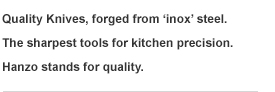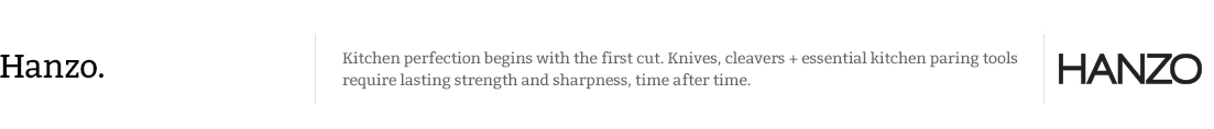 Kitchen perfection begins with the first cut. Knives, cleavers + essential kitchen paring tools require lasting strength and sharpness, time after time. HANZO’s stay sharp blades in forged ‘inox’ steel have always been an extention of the Chef’s expression. Reliable, corrosion resistant, tough, unadorned. Quality blades, forged from ‘inox’ steel. The sharpest tools for kitchen precision.