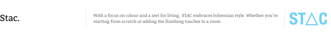 STAC embraces bohemian style. Whether you’re starting from scratch or adding the finishing touches to a room, furnish your house in style with STAC’s range of homewares, dining and decorator products. Bring your room to life.